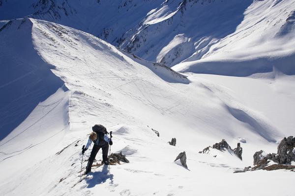 Wir aber steigen - wegen der Steilheit ohne Schneeschuhe - auf der dem Seeköpfl (links hinten) gegenüberliegenden Seite auf den Kempen.