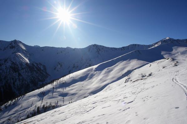 Im Südwesten - der Aufstiegsrücken auf das Seeköpfl.