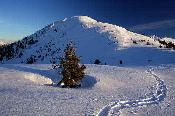 Und wieder einmal ein Blick über die eigene Spur zurück. Stein am Mandl.