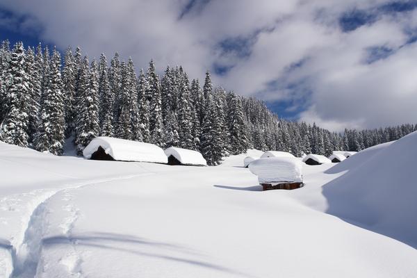 Die tief eingeschneiten Hütten auf der Viehbergalm sind erreicht - heute mit noch mehr Schnee, als bei meinem Besuch vor einer Woche am 19.02.2009.