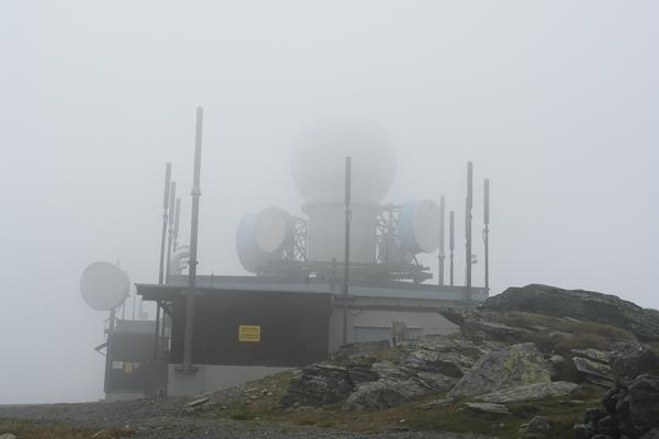 Je mehr ich mich dem "Scharfen Eck" nun nähere, umso schärfer bläst auch der Wind um´s Eck und vernebelt zusehends die Wetterstation am Gipfel.