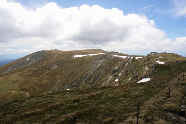 Also noch ein weiter Weg vor mir - auf geht´s. In Bildmitte der Fuchskogel. Das Gipfelkreuz steht etwas niedriger, auf der linken Hügelkuppe.