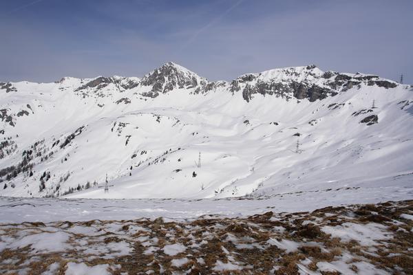 Blick auf die weniger schönen Strommasten, die sich zur Taferlscharte (rechts) hinauf ziehen ...