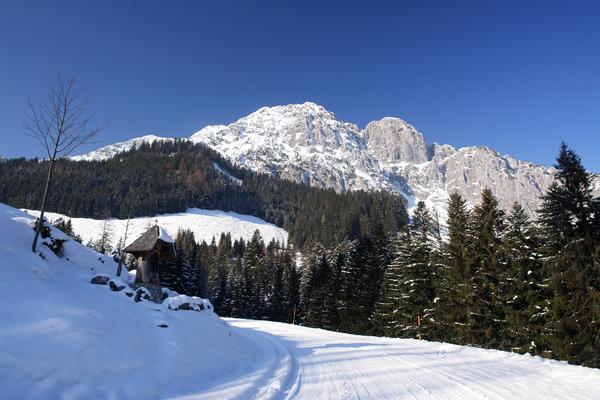 | Nach meiner Vormittagstour zur Goferhütte - nordseitenbedingt überwiegend im kalten Schatten verlaufend - wollte ich am Nachmittag noch etwas in den Genuß wärmender Sonnenstrahlen kommen. Deshalb machte ich bei der Nachhausefahrt noch einen kurzen Abstecher von Ardning auf die Ardningalm hinauf, wo sich der Bosruck in bestem Licht präsentiert. |