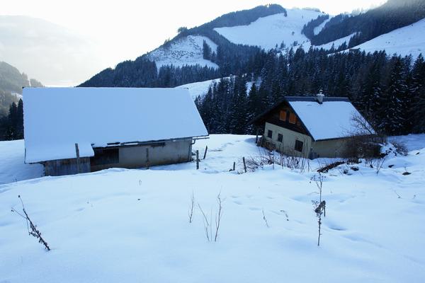 Kaum 100 Höhenmeter weiter unten traf ich im Umfeld zweier Hütten wieder auf einen Almweg.