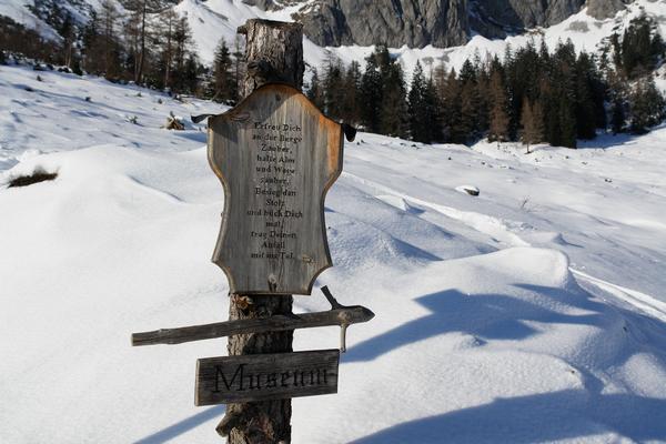 Ein origineller Wegweiser-Pfeil lockt mich zum Almmuseum ...