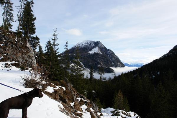 Nico schaut auf die Nebeldecke, die sich zwischen Kammspitz (links) und dem Stoderzinken (rechts außerhalb des Blickfeldes) hereindrängt.