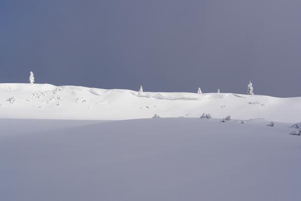Ausgeprägte Wechten auf den letzten, teilweise etwas steileren Metern, auf den Gipfel.
