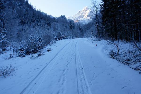 Auf den untersten Metern der Forststraße zur Goferhütte gibt es noch Autospuren.