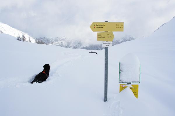 Unser heutiges Tourenziel - die Hafeichtscharte - ist erreicht. Nicht zuletzt der kalte Wind veranlasst uns zur raschen Umkehr.