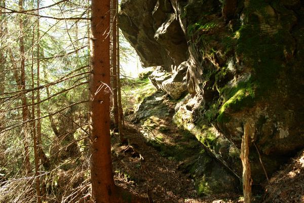 Allmählich wurde das Gelände aber unzugänglicher, felsiger, feuchter und rutschiger. Teilweise versank ich im vermodernden Waldboden bis über die Knöchel.