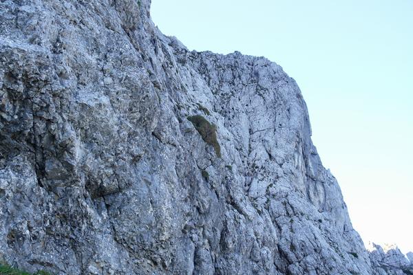 Und hier geht es gleich ordentlich und ausgesetzt in die Felsen. Aber eigentlich nicht schwieriger, als ich es am Großen Ödstein, am Admonter Reichenstein oder am Werfener Hochthron erlebt hätte. Ganz zu schweigen von der Großen Bischofsmütze.