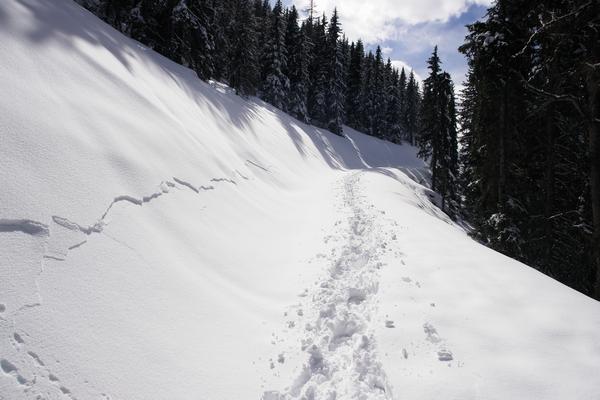 Über diesen - zahlreiche Wumm-Geräusche und Schneedeckenanrisse verursachend - wandern wir nun ostwärts.