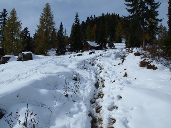 Hier verlassen wir die von Autos befahrene und "gespurte" Forststraße ...