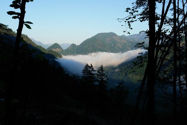 Unter mir liegt das Tal, welches ich heute bereits durchschritten habe, noch immer im Nebel.