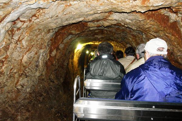 Das ist ein Trugschluß. In einer in diesem Ausmaß bislang noch nicht gekannten Massenabfertigung werden im Eilzugstempo Hunderte Besucher auf kleine Bahnwaggons verladen und ca. 2 Kilometer in den Berg gekarrt, wo ein Rundgang im Ausmaß von etwa 1 Kilometer folgt.