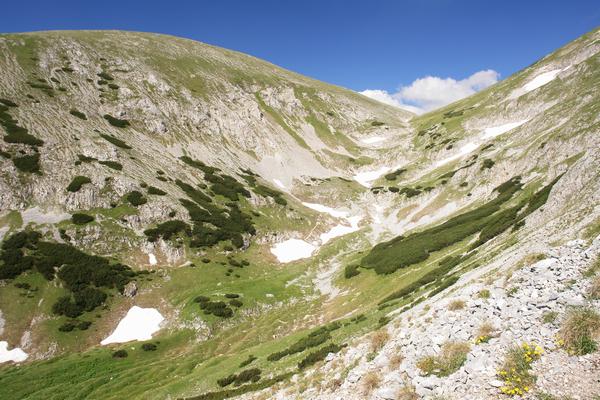 Blick hinab auf die Standardroute, über welche ich immer wieder Wanderer aufsteigen sehe.