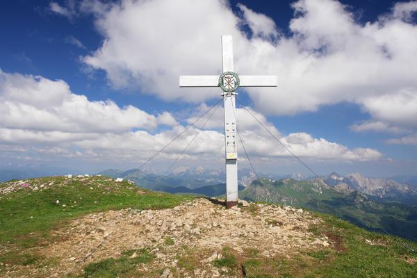 Beim Gipfelkreuz am Gößeck bin ich kurze Zeit alleine. Aber schon bald trudeln weitere Wanderer ein.