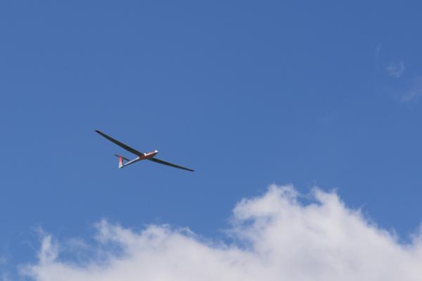 Begleitet von einem niedrig fliegenden Segelflieger ...