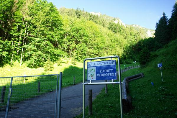 An einem umzäunten Quellschutzgebiet herum ...