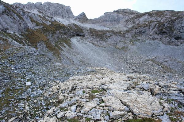 ... wird das Gelände steiniger und felsiger. Links die Rettenwand.