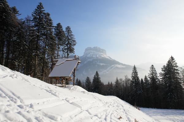 Am Pistenrand steige ich höher und genieße den Ausblick auf den Loser.