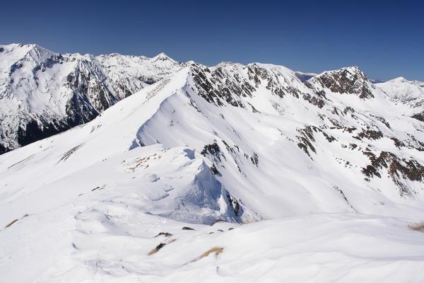 Gipfelblick über den Grat nach Norden über Tischfeldspitze und Unholdingspitze.