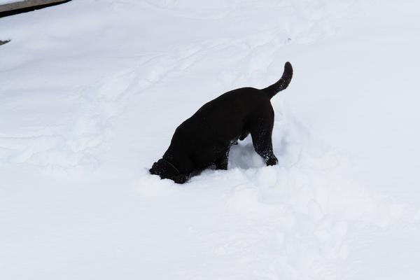 Was den Hunden (im Bild Nico) anfangs noch Spaß machte - das Herumwühlen in der weißen Pracht - sollte später dann vor allem für Sammy etwas mühevoller werden.