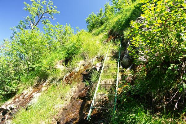 ... und auf diesem geht´s mit Hilfe einiger Eisenleitern wieder hinunter in den Almkessel.