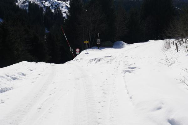 Beim Leonhardkreuz verlasse ich die geräumte Schneefahrbahn und zweige nach rechts ab.