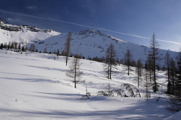 Zurück bei der Schneetalalm mit Blick auf den Schneetalrücken, der auf das zuvor bereits einmal erwähnte Säuleck führt.