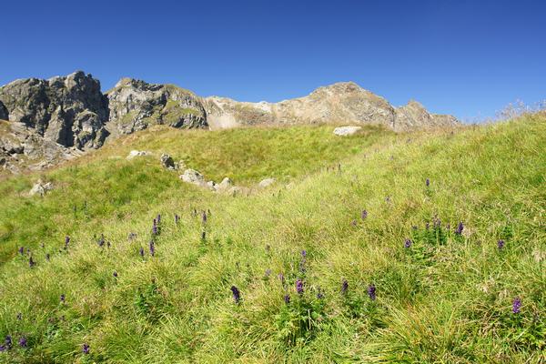 ... gelangen wir in einen breiten Wiesensattel zwischen Tristhof und Häuselspitze ...