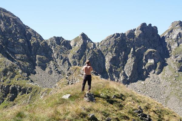 Über uns der zerklüftete, wenig einladende Berggrat ...