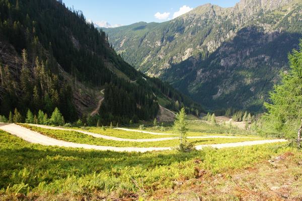 | Ein breite, hässliche Narbe hinterlassend, zerpflügt sie den Berghang. So weit es geht, kürzen wir sie daher über das Wandersteiglein ab, wo wir uns an köstlichsten Schwarzbeeren laben. Dann gehts auf weniger spannender Forststraße wieder zurück ins Tal zu unserem Ausgangspunkt. |