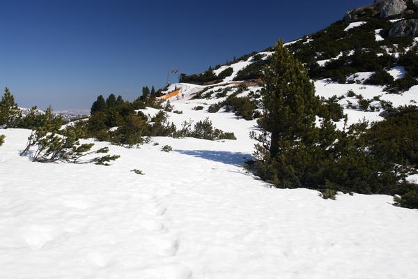 ... und bald erreichen wir die Bergstation des Stoder-Schigebietes, in dessen Umfeld gerade einige Paragleiter auf das Gipfelplateau aufsteigen.