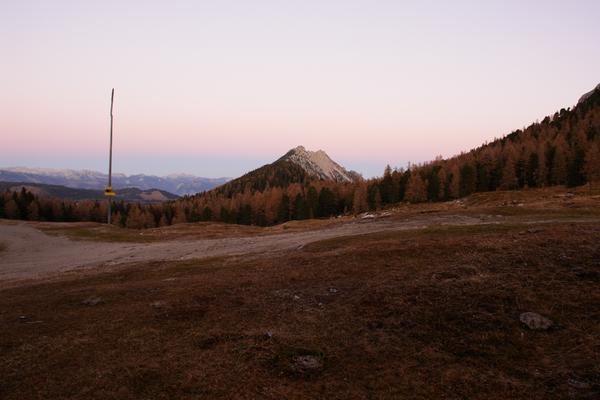 ... der mich noch rechtzeitig vor Einbrechen der Dunkelheit zurück zum Steinerhaus am Stoderzinken bringt. Ausblick zum nahen Kammspitz.