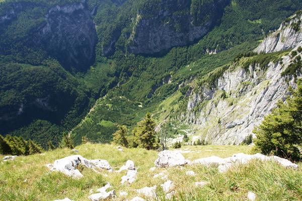 Sehr steil geht es hinunter ins Bluntautal.