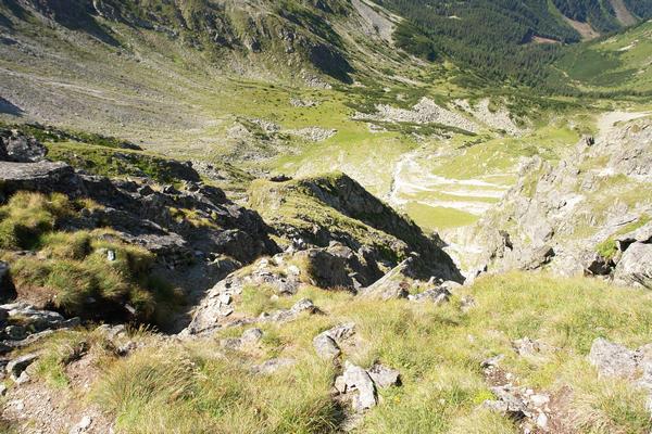 Ein etwas ausgsetztere Stelle über ein kurzes Felsband fordert noch einmal volle Konzentration ...