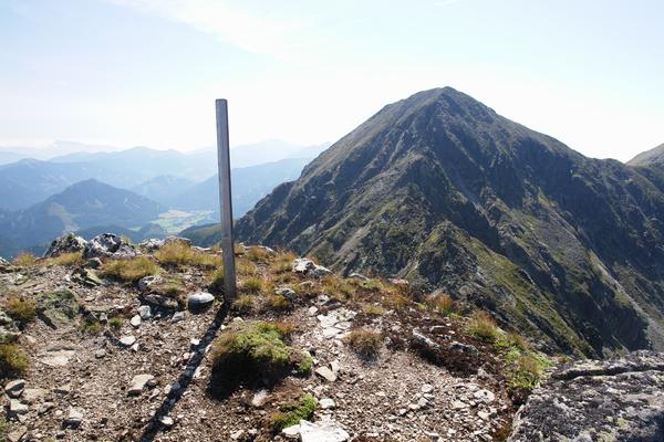 ... dann ist die Sonntagskarspitze erreicht. Blick zurück zum Großen Bösenstein ...
