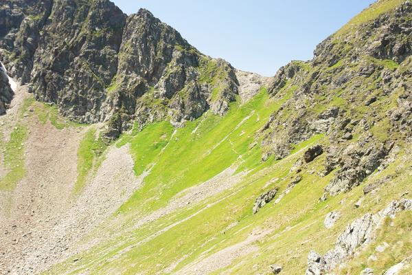 die Scharte über die ich herunter gekommen bin.