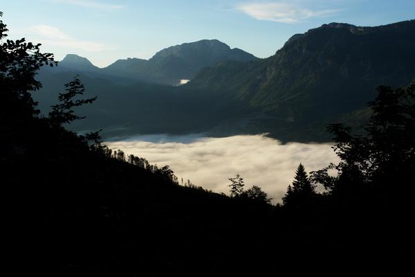 Auch das Tal unter uns wird bereits von der Sonne durchflutet.