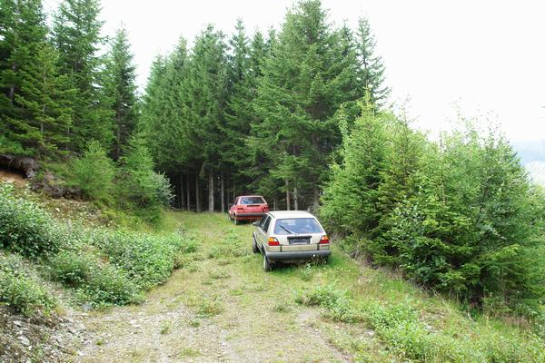 ... und einem "Waldparkplatz" hinab zur vielbefahrenen Straße über den Triebener Paß, der wir in der Folge Richtung Norden zurück zum Ausgangspunkt folgten.