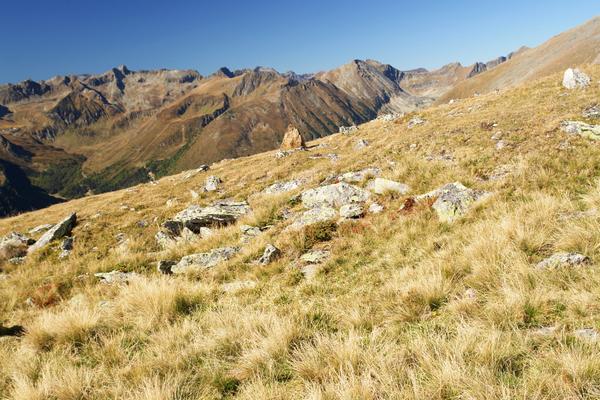 Nach der etwas steileren, aber nicht wirklich schwierig zu begehenden Nordwesthangquerung gelange ich auf den Westrücken des Feldeck ...