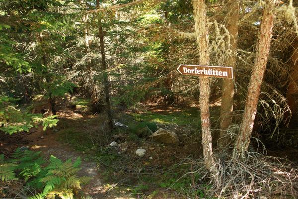 | Bei etwa 1.800 Meter Höhe dreht die Richtung dann nach Osten und über ein kurzes Waldstück sowie Almwiesen gelangt man zu einem Forstweg, der mich mit einer Abkürzungsmöglichkeit durch den Wald wieder zu den bereits vom frühen Morgen bekannten Dorfer Hütten zurück bringt. |