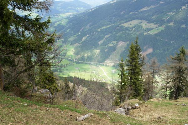 ... hinab zum Steilwald. Tief unter uns das Ausgangsgebiet der heutigen Tour.