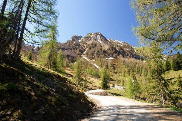 Im Angesicht unseres Gipfelzieles wandern wir auf einer großzügig angelegten, breiten Forststraße ...