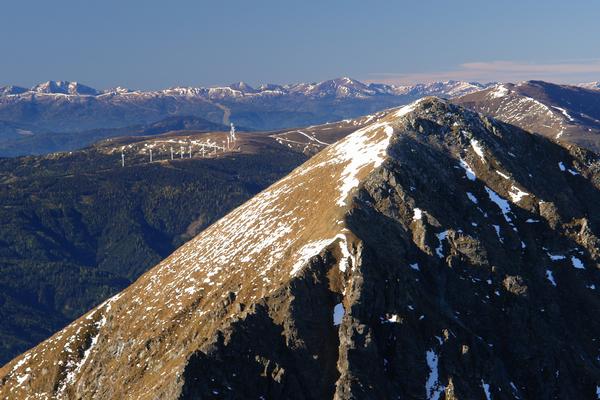 Im Zoomblick erkenne ich auch deutlich die großen Windräder über dem Lachtal (links).