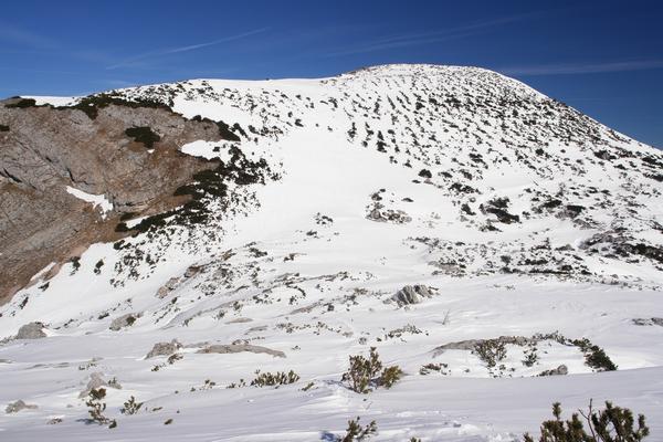 Von hier zeigt sich auch bereits deutlich, dass der Anstieg über die Südseite einfach möglich sein würde.
