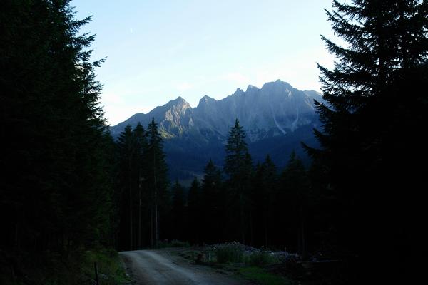 ... und im unteren Abschnitt weitgehend über Forstwege - die Gamskögel vor Augen ...