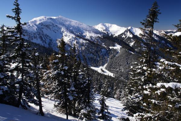 Leobner und Blaseneck. Unterhalb der Bildmitte die Grössingeralm ...